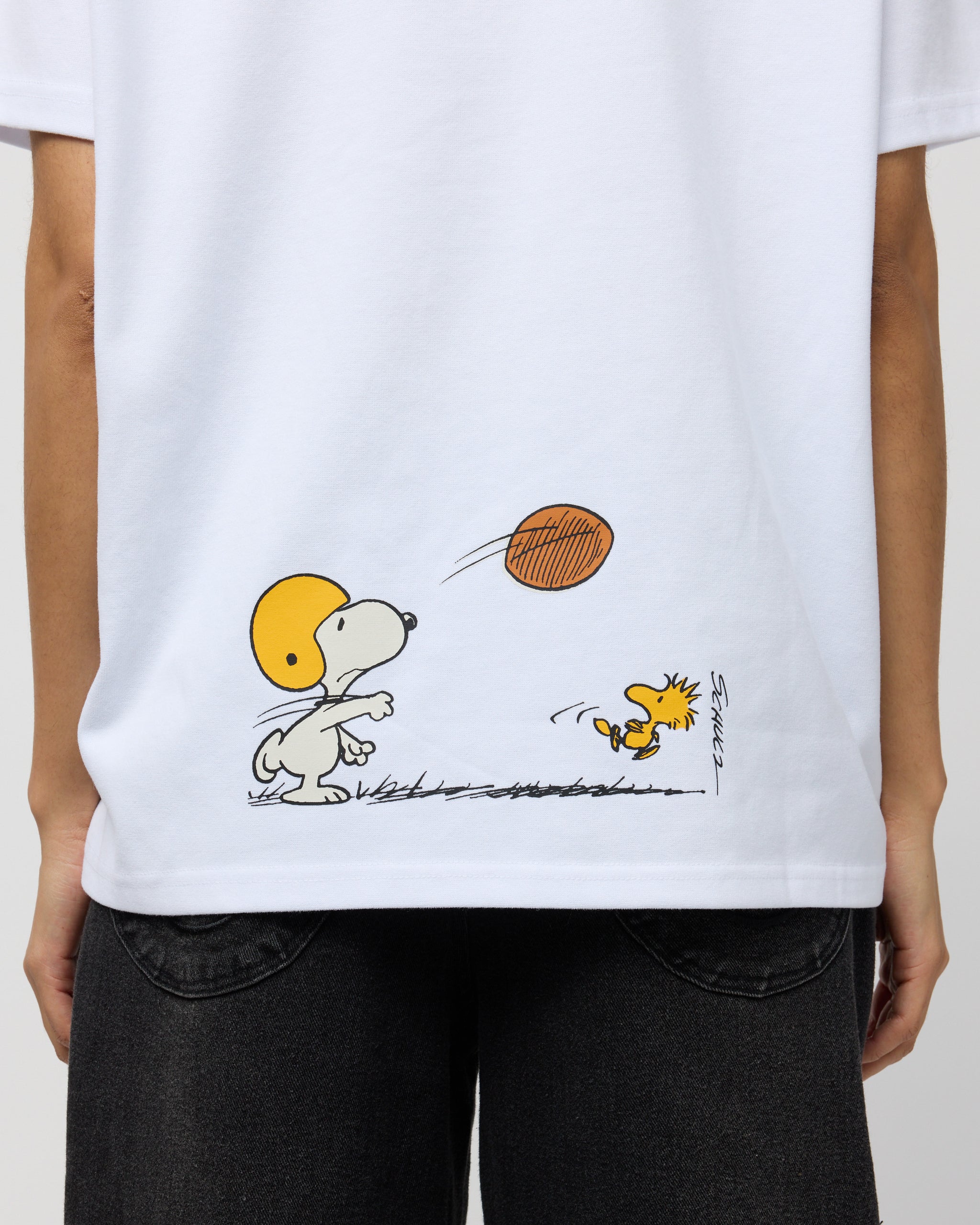 Welcome to the Snoopy Sports Club where Snoopy is the MVP of every game. This oversized tee features a playful front graphic of Snoopy trying every sport with his signature charm. Easy, relaxed, and full of personality, it's the perfect everyday tee for fans of sporty nostalgia.