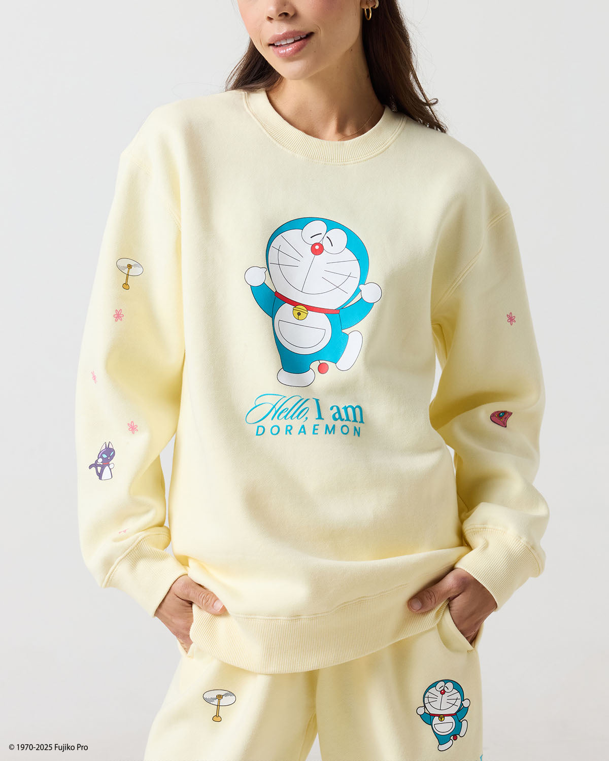 Say hello to comfort with the Doraemon Secret Gadgets Crewneck. Made from ultra soft fleece, this relaxed fit sweatshirt features Doraemon on the front with his signature gadgets printed along the sleeves. It’s a cozy, cheerful staple that brings a little futuristic fun to your everyday look.